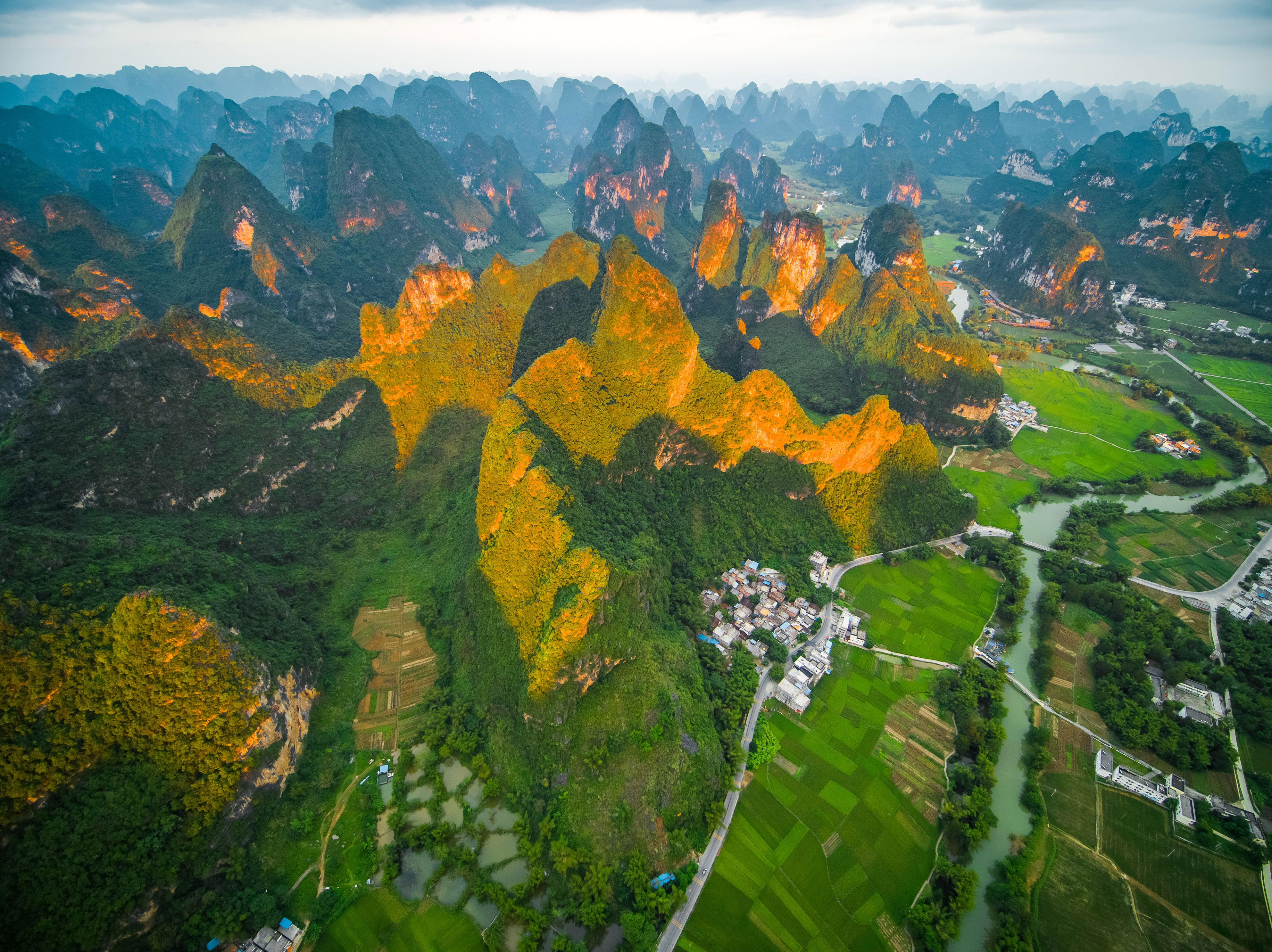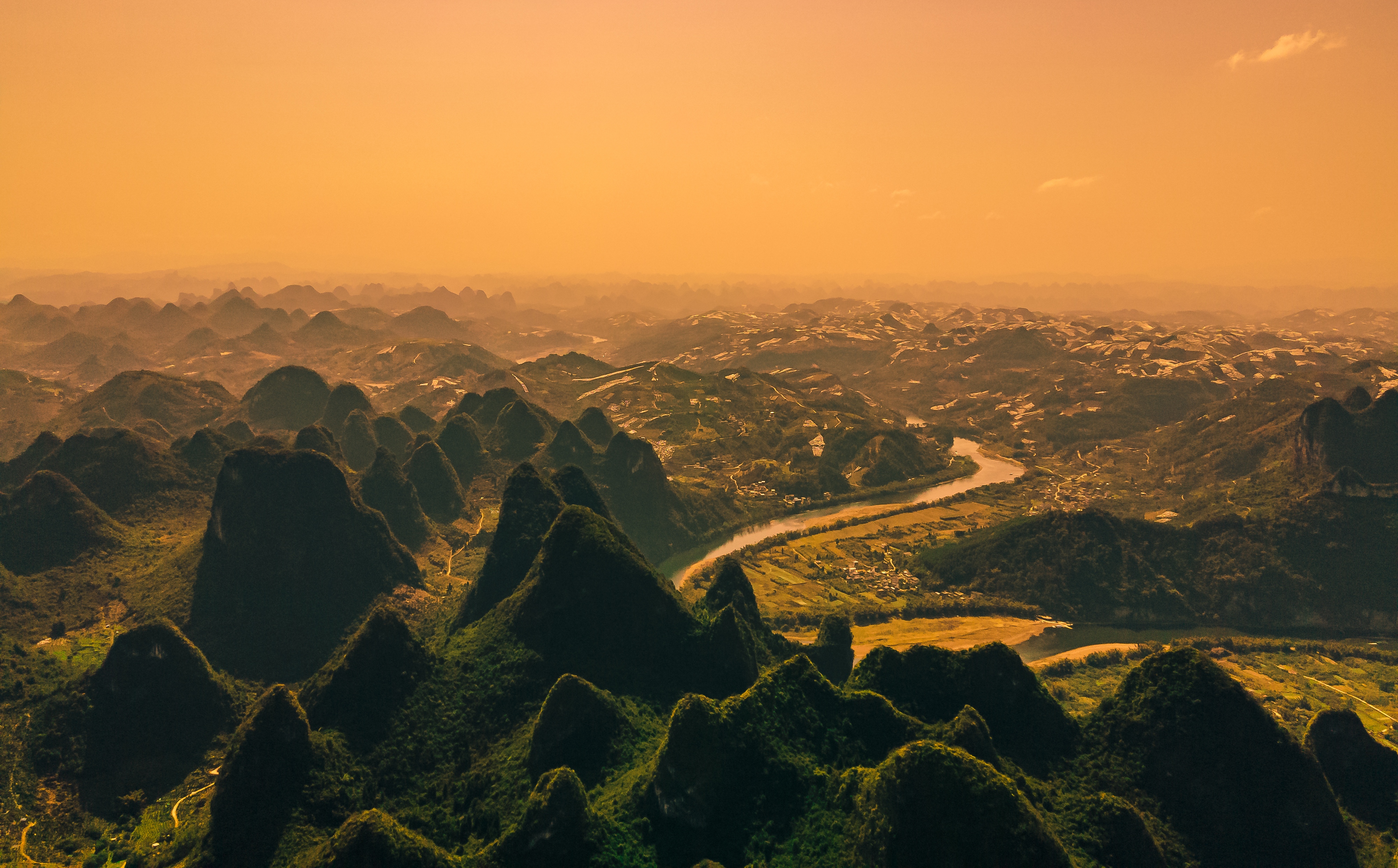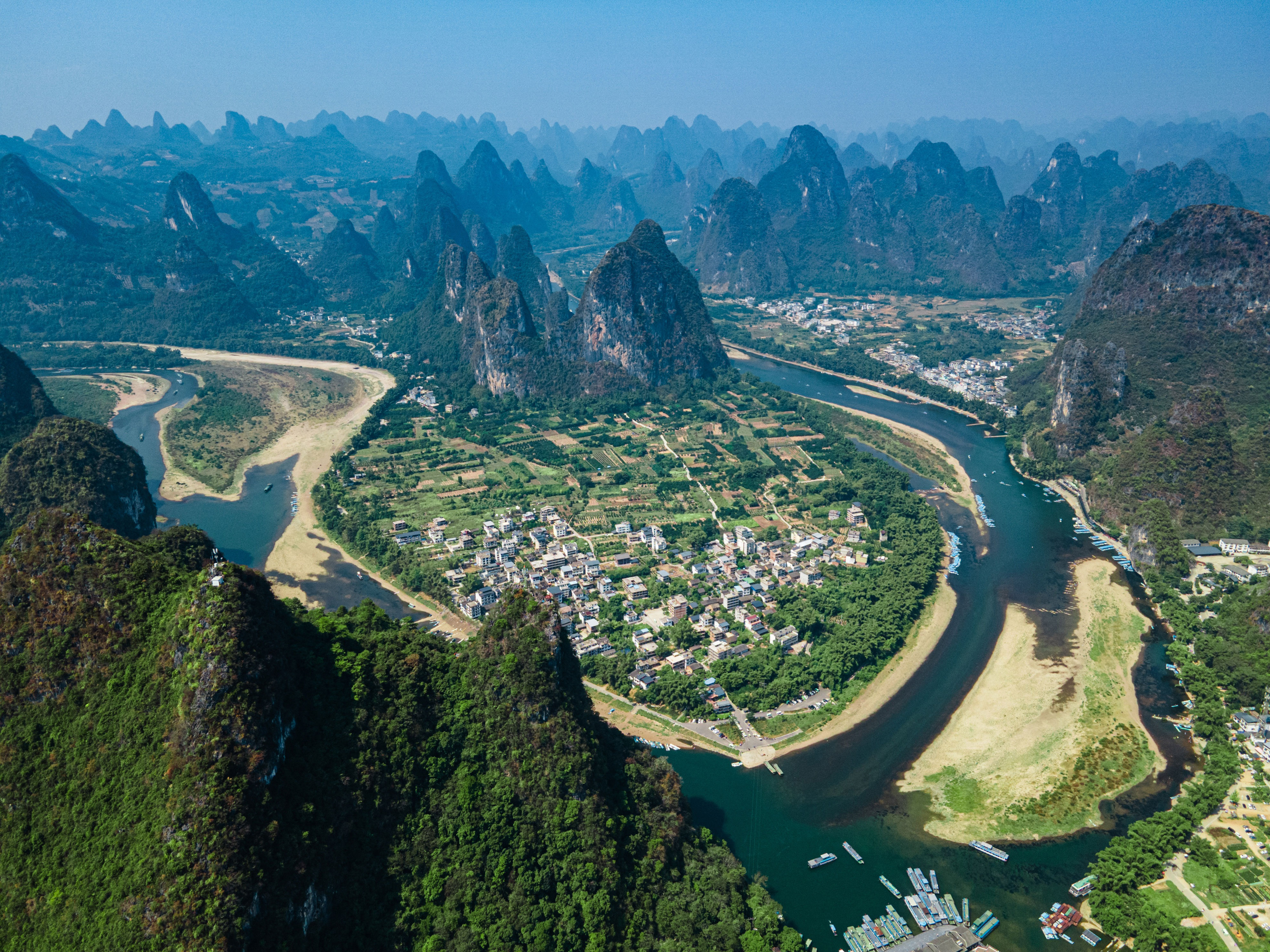 不愧是桂林最佳摄影地,登顶相公山,俯瞰脚下层峦叠嶂的喀斯特峰林与蜿蜒流淌的漓江,你会明白什么是"江山如画"。