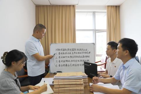 新疆维吾尔自治区库车市纪委监委通过个性化学习、一对一帮带、每周大讲堂等多种培训方式,围绕信访件受理、线索搜集和处置等方面,开展套餐式、精细式、小组式等模式的业务讲解,着力提升全市纪检监察干部专业素养和履职本领。图为该市纪委监委机关科室负责人为新入职干部和跟班干部开展小组式培训。(新疆维吾尔自治区库车市纪委监委 袁欢欢 摄)