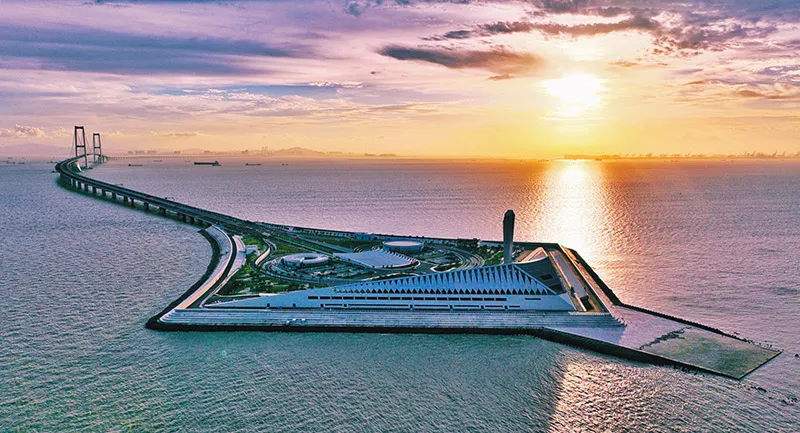 2024年6月30日,历时7年建设的国家重大工程深中通道正式通车运营。深中通道由中交集团、中国中铁和保利集团等中央企业,及镇江蓝舶科技、德阳天元重工等多家民营企业共同参与建设,是当前世界上综合建设难度最高的跨海集群工程之一。图为2024年6月27日拍摄的深中通道。 中交集团供图